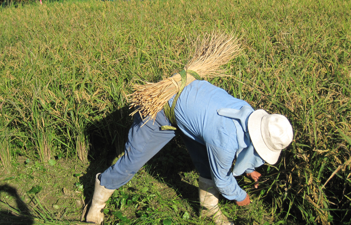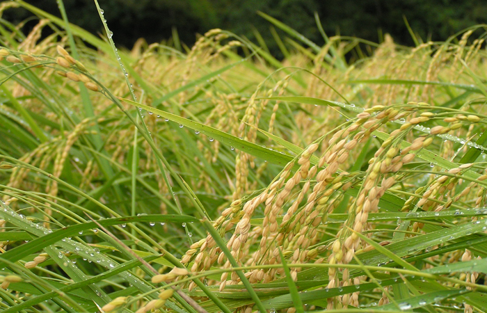 穂が垂れる収穫の秋に、育った稲を刈り取ります。