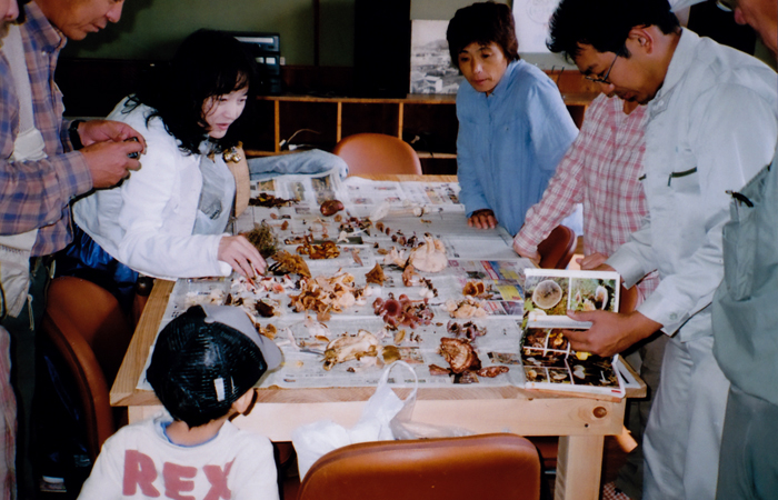 キノコ採りガイドと一緒に里山でキノコを採集します。