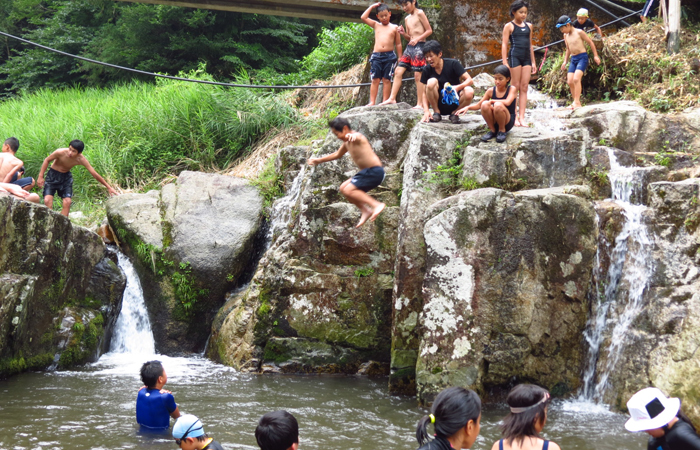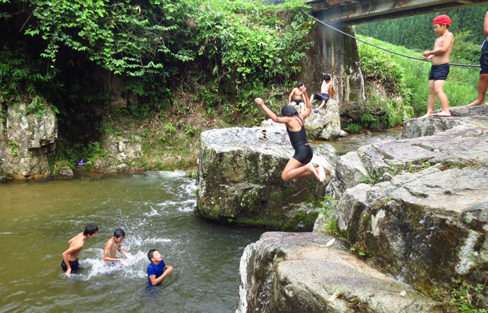 川遊び、飯盒炊飯、炭焼き、薪割り、収獲体験など多くの田舎体験が可能です。
