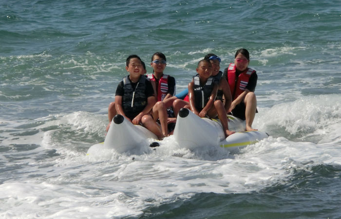 ウェイクボードやバナナボートを専門スタッフがジェットスキーで引っ張ります。